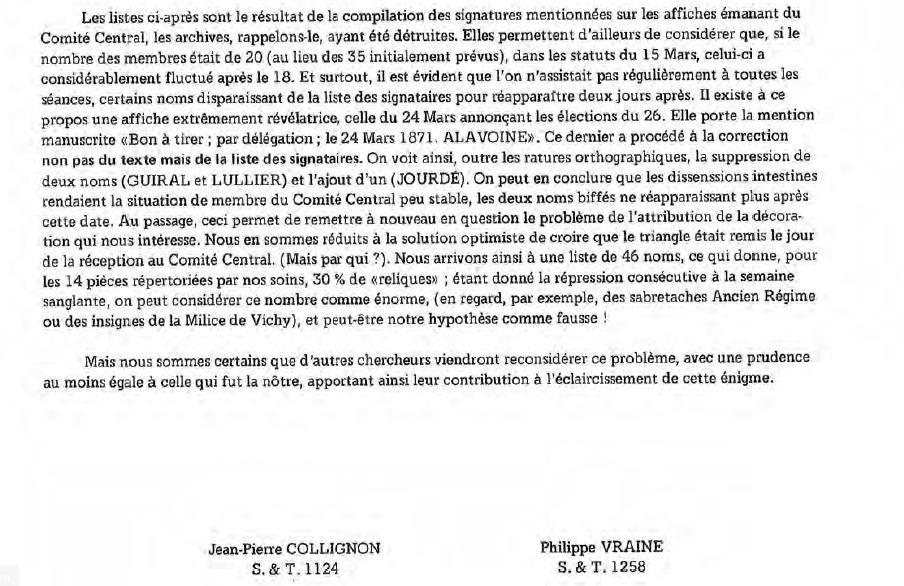 Concernant l’article ci-après, paru dans notre bulletin en 1981, celui-ci présente des informations encore quasi-exhaustives aujourd’hui, tant les sources sur ce sujet demeurent rares et difficiles d’accès. Il n’est pas exagéré de dire que cet article a été écrit par deux auteurs figurant parmi les plus grands spécialistes du thème, puisque outre Jean-Pierre Collignon, dont nous avons déjà évoqué le parcours sur ce site, ce texte est dû à Philippe Vraine. Monsieur Vraine a notamment écrit les livres suivants, qui font référence : « Médailles et insignes portables de la guerre Franco-Allemande de 1870-1871 », en 2 tomes et « La société de retraites des vétérans des armées de Terre et mer 1870 -1871 ».